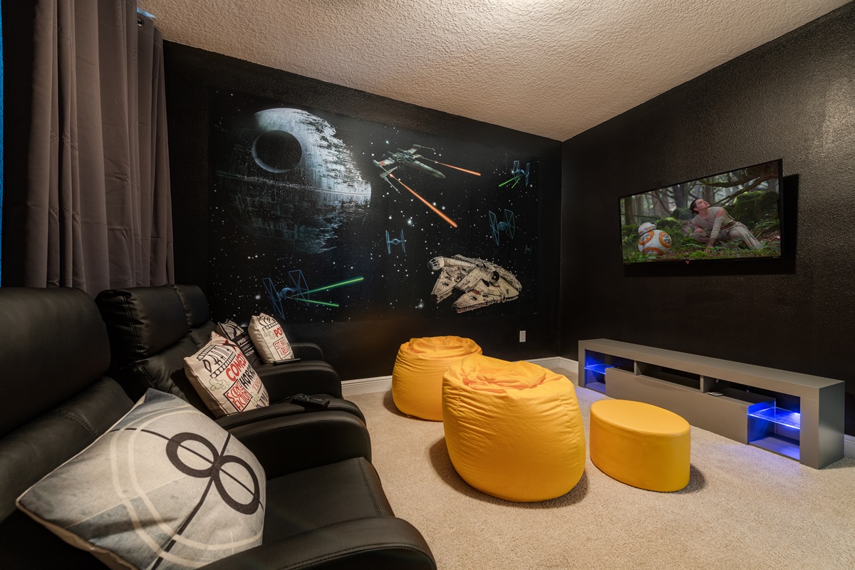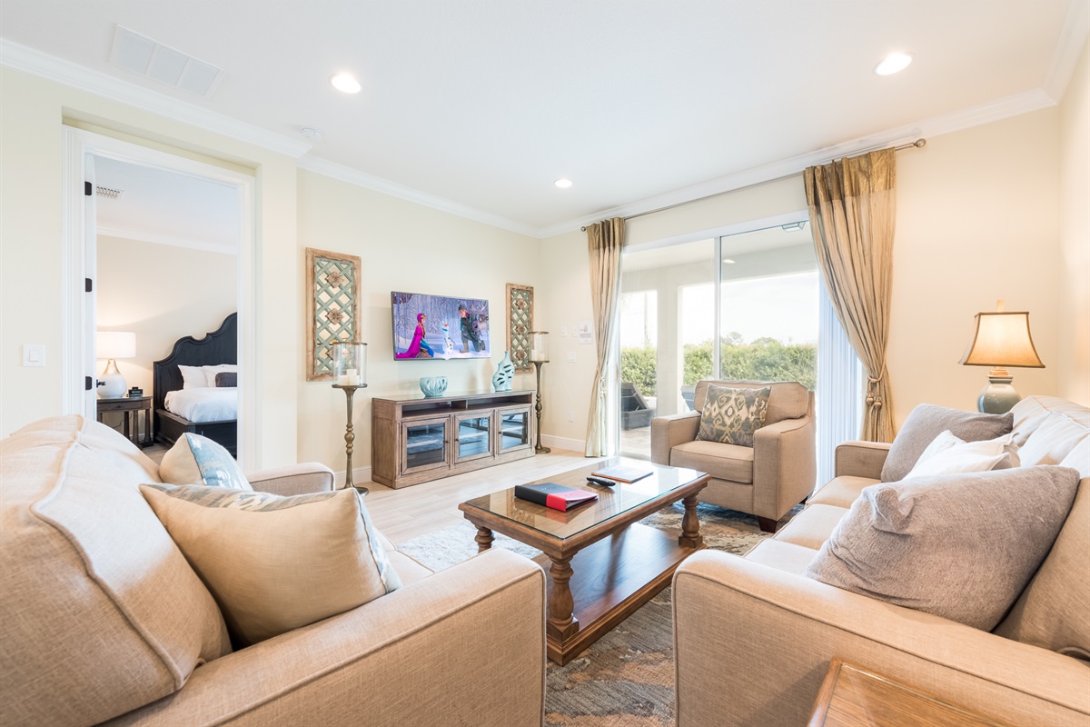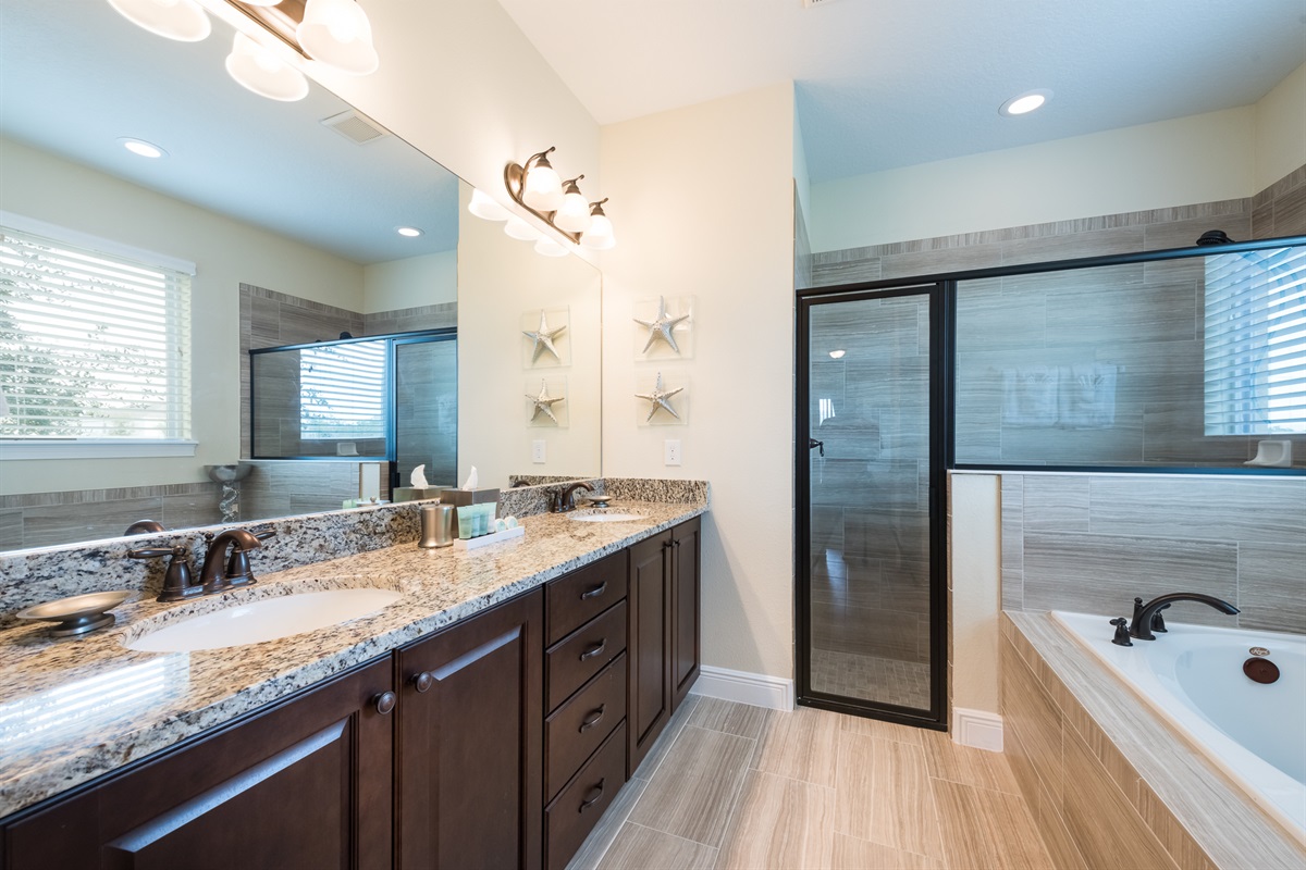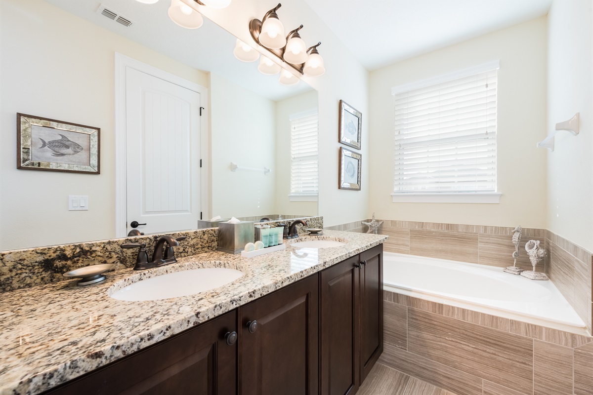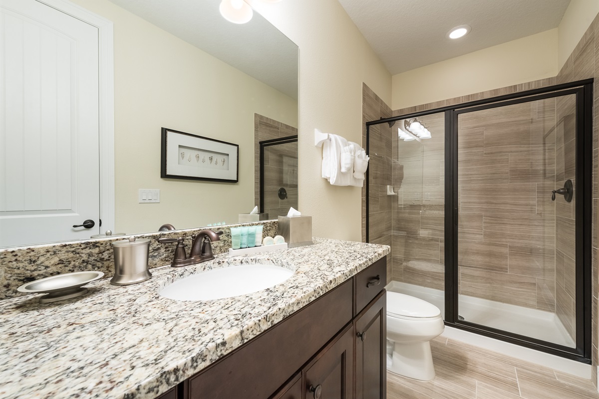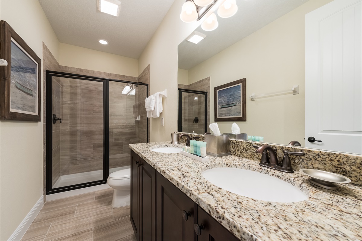 6 Bedrooms • 6 Bathrooms (4 full, 2 half) 6 Baths (4 full, 2 half) • Sleeps 10-14This 6 bedrooms 6 bathrooms by Disney Villa is made to impress. 4 en-suite bedrooms and 3 bedrooms with a full bathroom right outside the door makes it all perfect. Relax in our themed rooms with pool and hot tub. All bedrooms are equipped with Smart TVs and of course enjoy home cooked meals in this nice full kitchen. Game area with racing games. Access to beach volleyball and basketball courts. This Villa is close all the parks, shopping malls and restaurants.